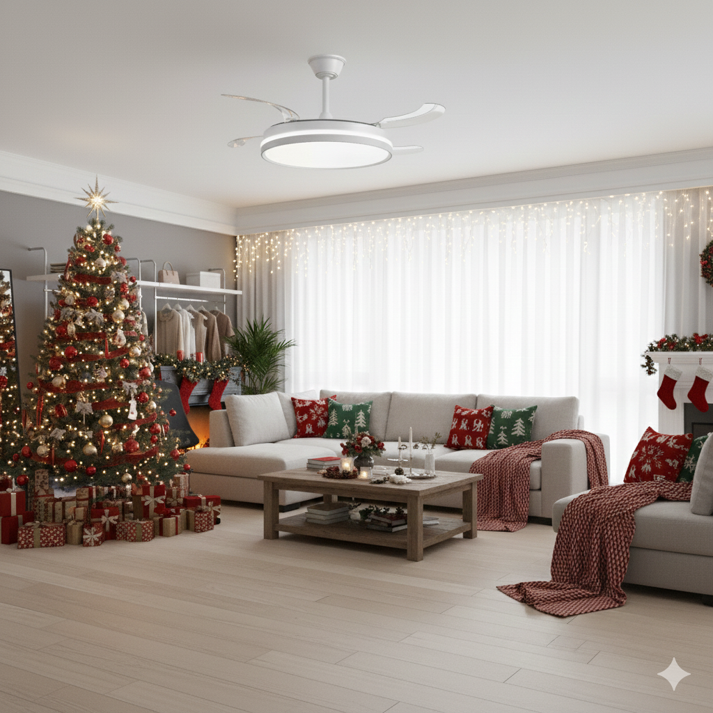 Com pás retráteis, o modelo se mantém discreto quando desligado e ganha amplitude quando acionado. Sua iluminação LED 60W oferece três temperaturas de cor (3000K / 4000K / 6000K), entregando desde clima aconchegante até luz branca super clara, ideal para qualquer ambiente.