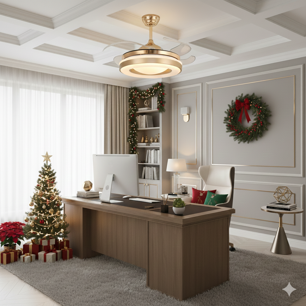 Com hélices retráteis, ele se fecha quando desligado, deixando o visual elegante como um lustre — e se abre suavemente ao ligar a ventilação.